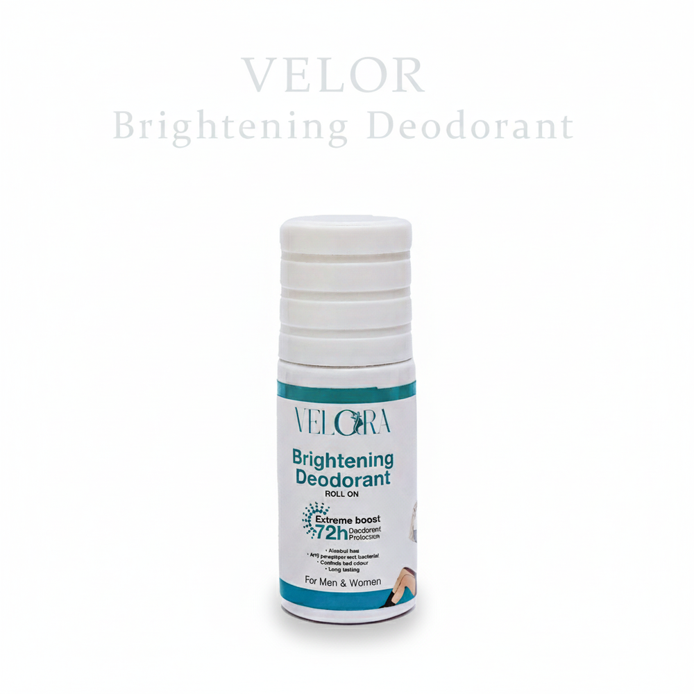 Stay fresh and confident all day long with Velor Brightening Deodorant Roll-On – your ultimate partner for underarm care. Specially formulated for both men and women, this deodorant delivers 72 hours of extreme odor protection without overpowering fragrances.